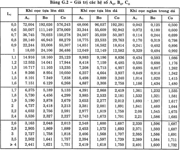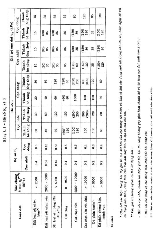 Chú thích: Trị số ở tử số là dùng cho cọc đóng, ở mẫu số cho cọc nhồi. |