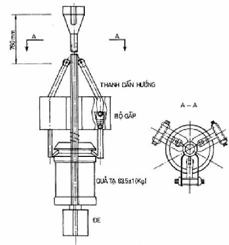 2.4.1. Quả búa hình trụ tròn xoay, bằng thép có lỗ giữa chính tâm để có thể rơi trượt tự do theo thanh dẫn hướng. Búa phải có cấu tạo phù hợp với bộ gắp nhả, sao cho có thể dễ dàng được gắp, nhả rơi tự do từ độ cao cần thiết.