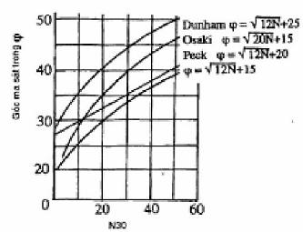 Quan hệ giữa góc ma sát trong và sức kháng xuyên tiêu chuẩn có thể như sau: