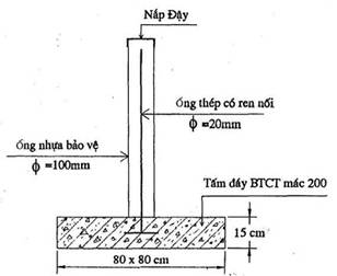 – Đế mốc đo lún phải đặt trên lớp vải địa kỹ thuật ngăn cách giữa nền đất yếu và đệm cát. Trường hợp không có lớp vải địa kỹ thuật thì đế này đặt ở giữa bề dày lớp đệm cát. – Chiều dài của ống nhựa có chứa ống thép phải cao hơn mặt nền đất đắp khoảng 20cm. – Số lượng và vị trí đặt mốc đo lún do người thiết kế quy định sao cho có thể biết được độ lún của toàn bộ diện tích nền đắp. |