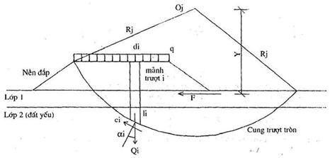 – Ci và ji: lực dính và góc ma sát trong của lớp đất chứa cung trượt li của mảnh trượt thứ i