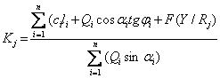 Tính toán theo phương pháp Bishop thì hệ số ổn định Kj ứng với một mặt trượt tròn có tâm Oj (hình III.1) được xác định theo công thức sau:
