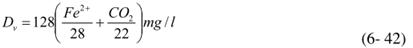 2- Khi khử Silic trong nước bằng keo tụ liều lượng FeSO4, FeCl3 hoặc Al2(SO4)3 phải lấy bằng 15 mg cho 1 mg SiO3 và pha thêm vôi với liều lượng đủ để nâng pH sau khi pha phèn lên 7,8 đến 8,3. Liều lượng vôi tính toán D (mg/l) (tính theo CaO) xác định theo công thức