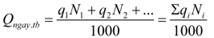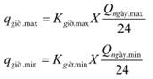 Lưu lượng nước tính toán trong ngày dùng nước nhiều nhất và ít nhất Qngày(m3/ngày) cần tính theo công thức: