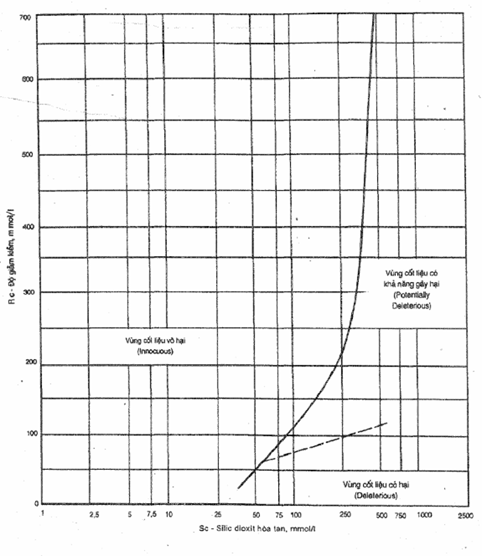 Khi một trong ba điểm kết quả thử nghiệm nằm trên vùng cốt liệu có hại tức phía phải đường cong vẽ nét liền và phía dưới đường thẳng nét đứt trên giản đồ hình 2.