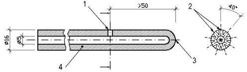 (f) thiết bị đo nhiệt độ trong lò nung và trên bề mặt không bị đốt nóng của mẫu thử, và những vị trí bên trong phạm vi kết cấu mẫu thử khi cần;