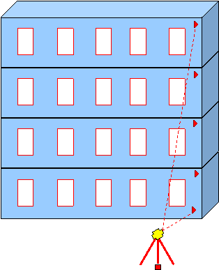 5.5.1    Độ nghiêng của các toà nhà cao tầng trong giai đoạn khai thác sử dụng có thể được đo bằng các máy toàn đạc điện tử có chế độ đo trực tiếp không cần gương, các máy toàn đạc điện tử thông thường hoặc các máy kinh vĩ.