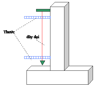 5.4.2     Phương pháp đơn giản nhất để xác định độ nghiêng của các yếu tố của nhà cao tầng trong giai đoạn thi công là treo dây dọi và dùng thước để đo khoảng cách từ dây dọi đến yếu tố cần kiểm tra ở phía trên và phía dưới. Độ nghiêng của yếu tố cần quan trắc được đánh giá thông qua chênh lệch khoảng cách đo được ở phía trên và phía dưới (Hình A.1, phụ lục A).